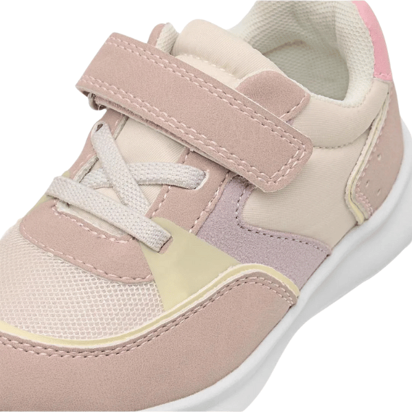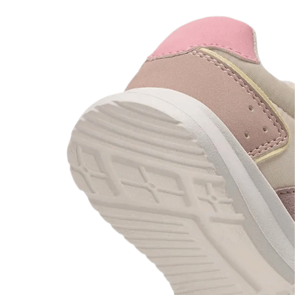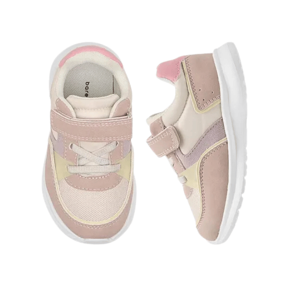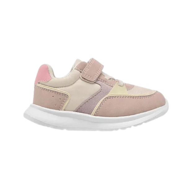 حذاء رياضي بناتي مريح باللونين الأبيض والوردي مع شريط لاصق.